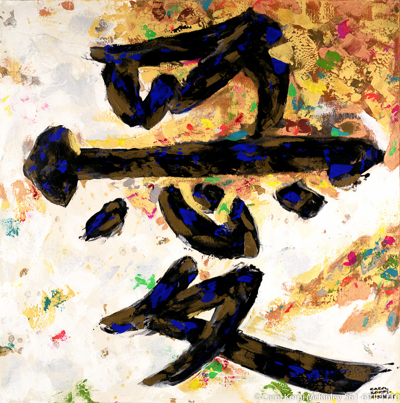 Chinese Symbol Devotion #MSC-026b, Original Acrylic on Canvas: 40 x 40 inches, Sold; Stretched and Gallery Wrapped Limited Edition Archival Print on Canvas: 40 x 40 inches $1500-. Custom sizes, colors, and commissions are also available. For more information or to order, please visit our ABOUT page or call us at 561-691-1110.